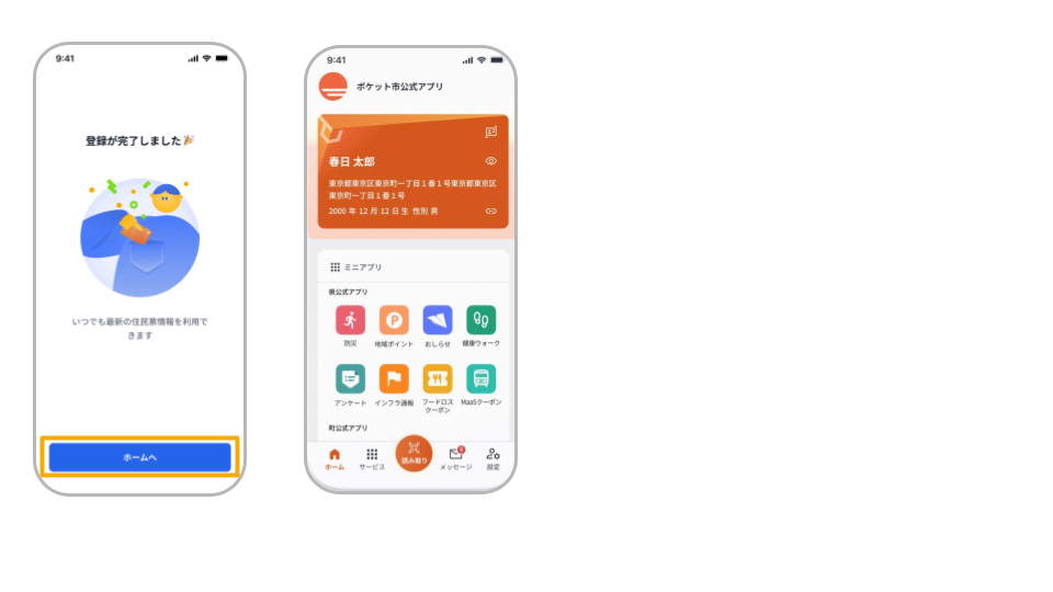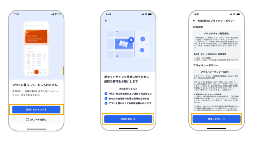 ポケットサインアプリをインストール後、アプリを起動し、「新規登録」ボタンをタップしてください。画面の案内に従い、マイナンバーカードの読み取り、電子証明書による本人確認を行います。登録完了後、サービスの利用が可能となります。