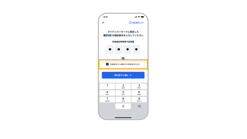 ・券面事項入力補助AP:数字4桁