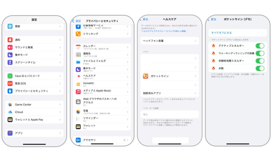 ・ポケットサインアプリにヘルスケア/ヘルスコネクトの歩数データへのアクセス許可が付与されているか